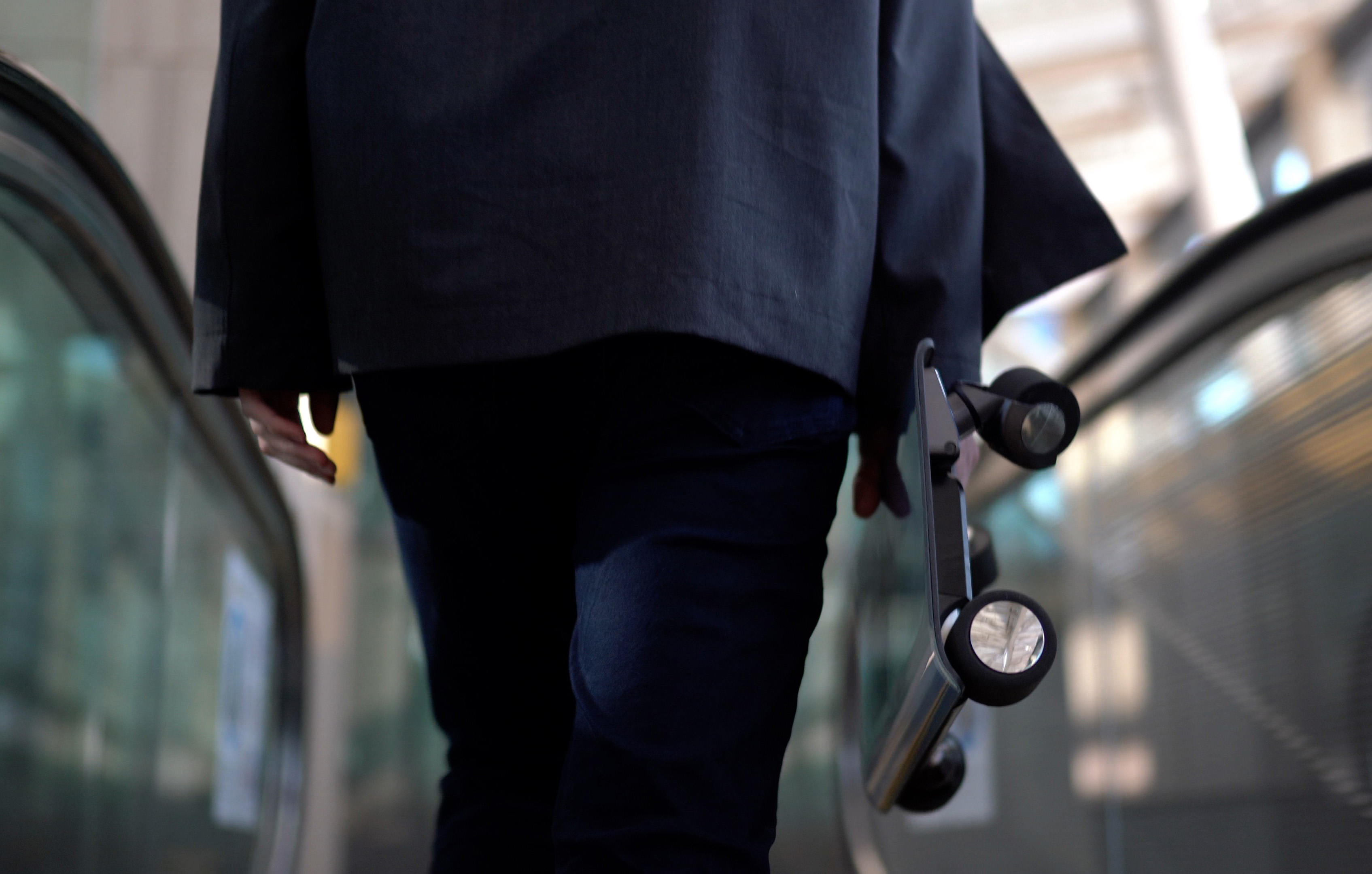 이런 흐름 속에서 현재의 젊은 개발자들은 '퍼스널 모빌리티를 어떻게 휴대할 것인가'에 상당한 고민을 들이고 있습니다. 한강 대교들의 좁은 길목에 떡하니 세워진 전동 스쿠터를 옆으로 치우려고 해도 그 엄청난 무게에 기겁할 정도인데요. 전동 스쿠터나 비슷한 탈것을 개인이 아주 쉽게 휴대할 수 있다면 적어도 이런 문제는 없어질 것입니다. COCOA MOTORS라는 스타트업에서는 이제 '워크카(Walkcar)'라는 제품을 진짜로(?) 출시한답니다. 위의 사진에서 보시다시피 아주 작은 패널처럼 생겼으며 각 바퀴 속에 들어있는 모터로 주행하는 제품입니다. 아래의 영상에서 동작 모습을 보실 수 있습니다.